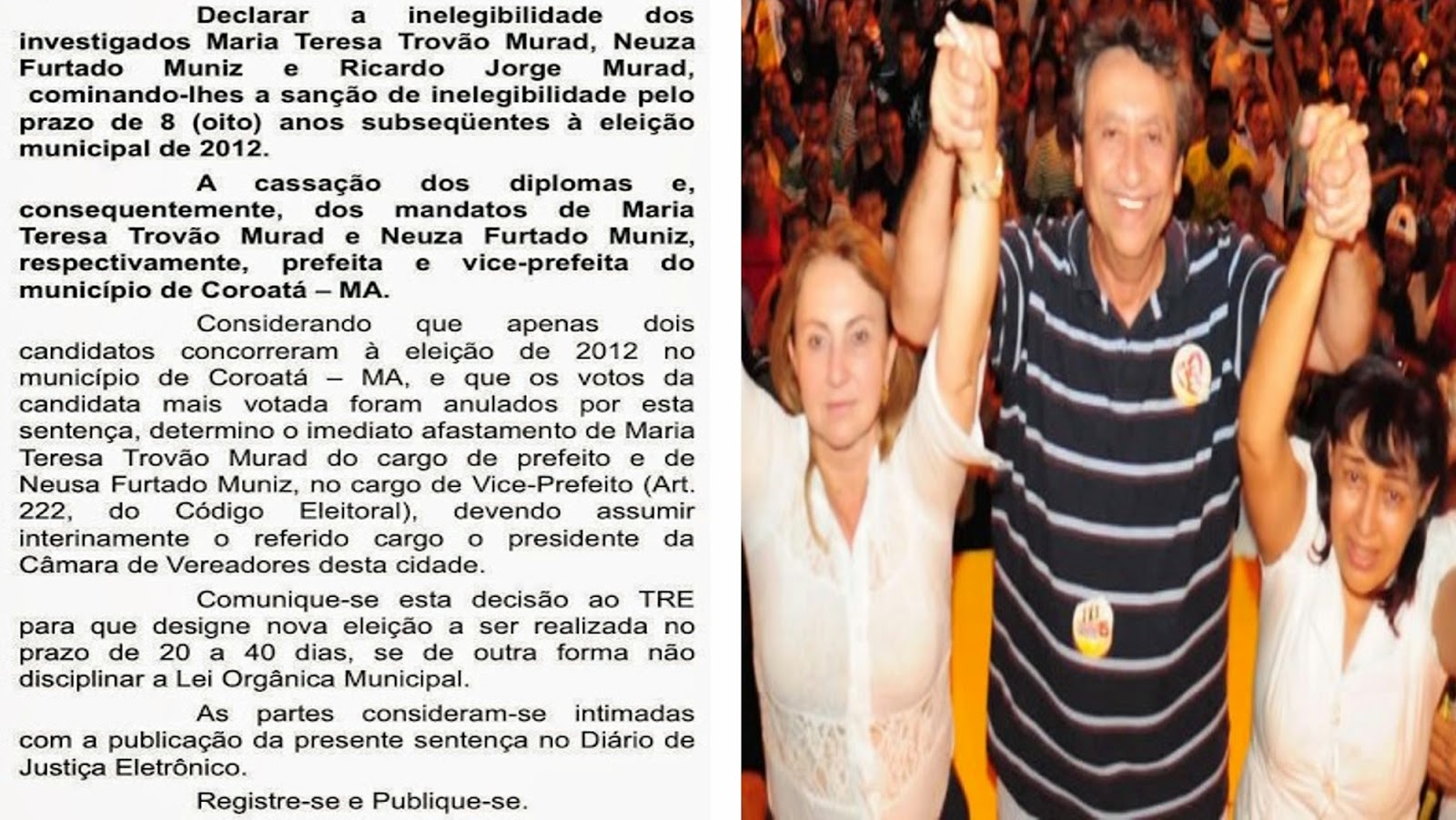| REPRESENTADO: | Coligação Coroatá Livre para Crescer | ||