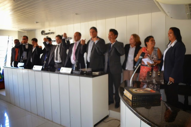 Vereadores de Paço do Lumiar-Ma em sessão extraordinária realizada nessa quinta-feira (13), reconduziram ao cargo de Presidente do Legislativo para o Biênio 2015/2016 o vereador Leonardo Bruno (PPS), que continuará comandando o Legislativo Municipal. Dos 15 vereadores que compõem o parlamento, 12 compareceram, e de forma unânime deram seus sim à nova Mesa Diretora.