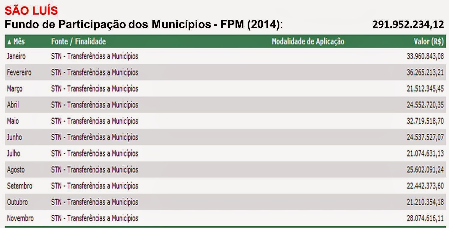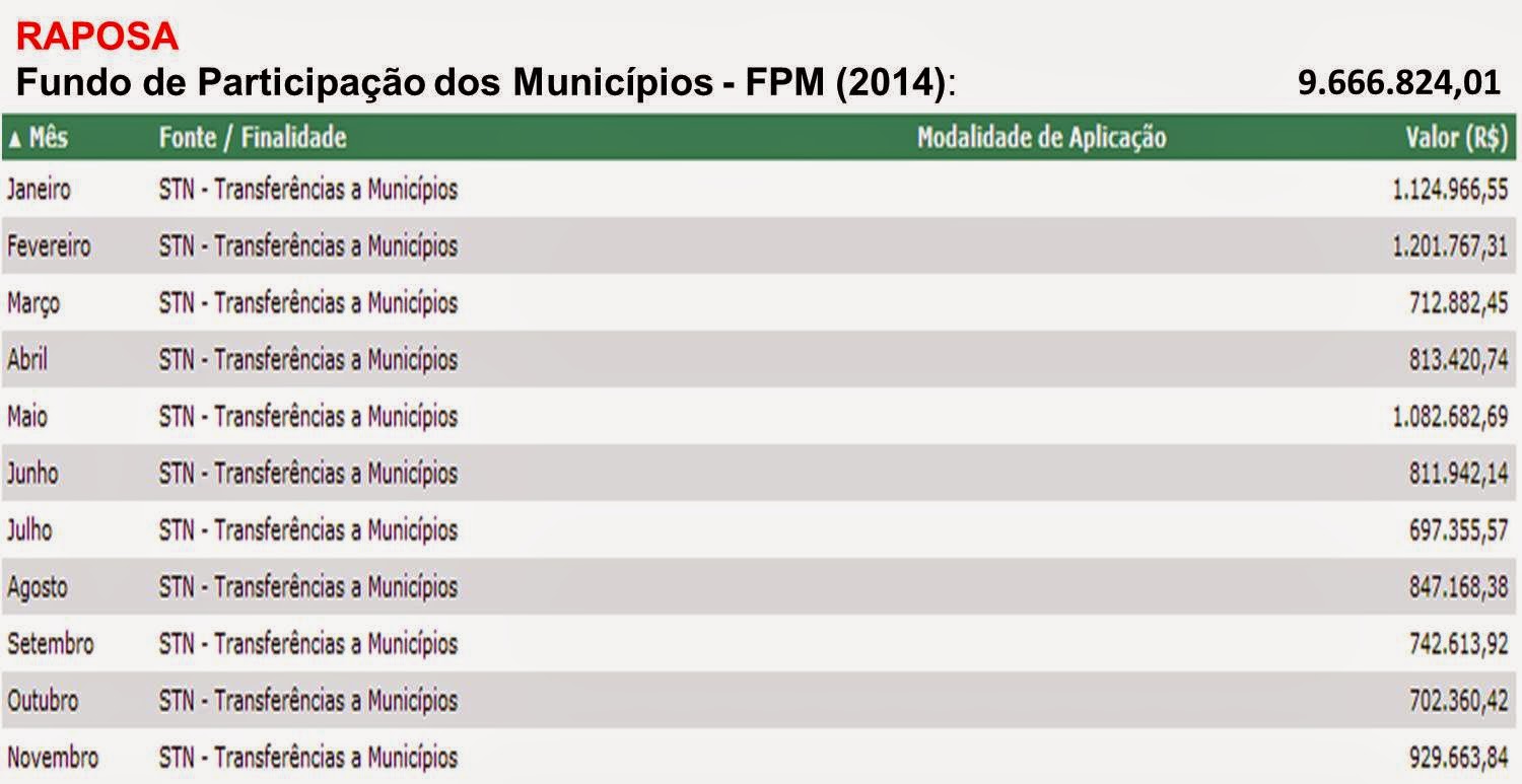 FPM 2014 DOS 5 MUNICÍPIOS DA REGIÃO METROPOLITANA. CONSULTE TAMBÉM DO SEU.