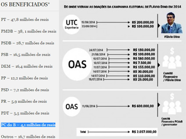Por por conta disto, Flávio Dino recebeu 300 mil da mesma UTC como 'doação de campanha'.