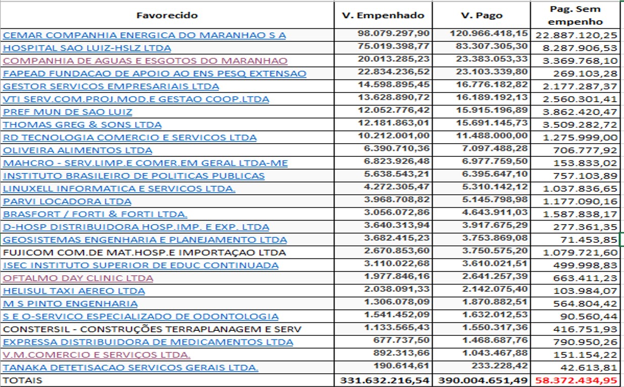 Mas, na gestão do governador Flávio Dino pagamentos são feitos acima dos valores empenhados.